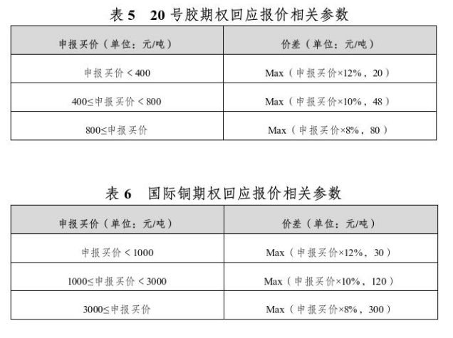 20号胶期权合约月份涉及的标的期货持仓量阈值为10000手(单边);国际铜期权合约月份涉及的标的期货持仓量阈值为5000手(单边)。